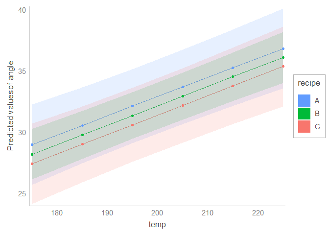 # plot_model(fit, type = 'pred', terms = c('temp', 'recipe_recoded'))